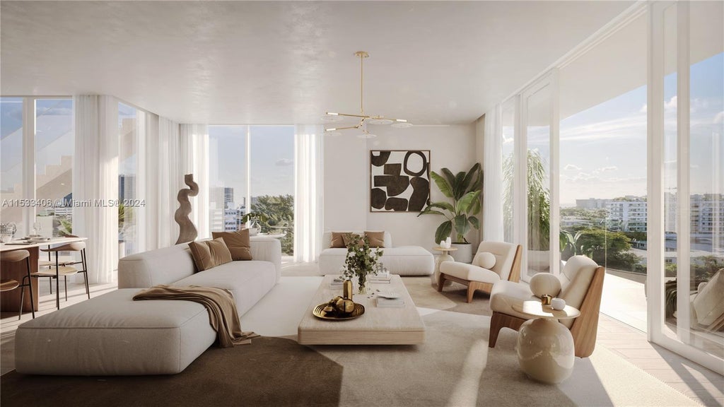 Solina is a boutique new development in Bay Harbor Islands, FL, comprising 7 residences and 2 penthouses emphasizing privacy, expansive interior space, private balconies and luxury island living. Residence 5A is fully finished with two bedrooms, two bathrooms and a powder room. Enjoy a unique and oversized wrap-around terrace with over 1,061 sf of exterior living. This is the only unit on the amenity level that feels like an extension of the unit. High end finishes in each unit include gourmet kitchens with premium Bosch appliances, travertine backsplashes and white quartz countertops. The building includes a rooftop pool, private storage, two parking spaces per residence. Bay Harbor Islands offers serene parks, bay access, world-class dining, shopping, and a strong educational system.