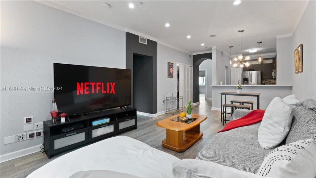 This stunning 2-bedroom, 2-bathroom condo offers a sleek, modern design with convenient first-floor entry. Recently renovated, the kitchen and bathrooms boast contemporary finishes, complemented by stylish lighting throughout. The unit includes assigned parking and is ideally located near the Palmetto Expressway. Ready for you to move in and enjoy!