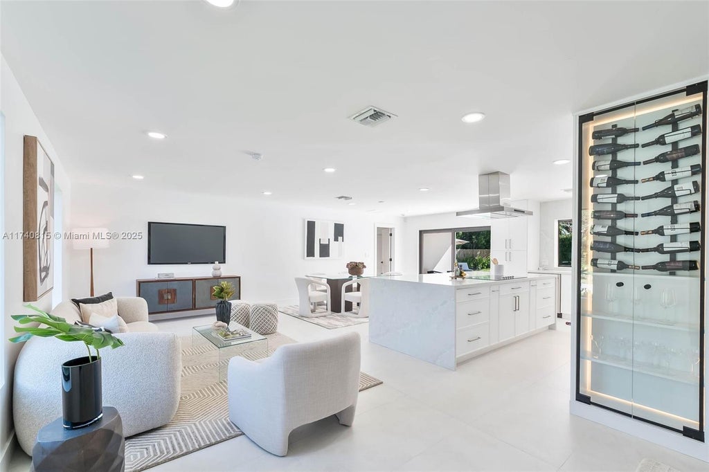 Complete Renovation (with permits) in N Palmetto Bay! Stunning 4 bedroom 3 bath smart home features open concept design. Eat in kitchen showcases center island with quartz countertops, custom wine bar, and Kitchenaid appliances. Porcelain tile floors throughout. Impact windows and doors. Luxurious primary suite with spa like bath with soaking tub & custom closet. Split plan includes junior suite. Den easily converts to 5th bedroom. Dedicated laundry room. 2022 AC and new duct work. All new plumbing, septic system, electrical, tile roof, and paver driveway. Covered terrace, shell stone patio, pebble tech pool. Fenced corner lot on quiet cul de sac. This is a must see!