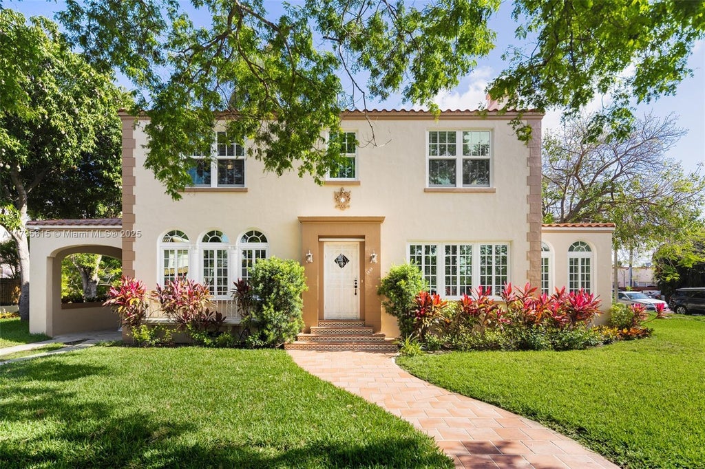 Welcome to Villa Amata- a 1932 Italian Renaissance Revival in historic Shenandoah. Set on a double corner lot, this architectural gem stands w/ elegance & presence. Originally built by a father for his daughter, Villa Amata has been thoughtfully restored, blending timeless character w/ modern updates. Step inside to soaring ceilings, hardwood floors & an original fireplace. Functional layout w/ formal living & dining rms, powder rm, family rm & bright sunroom. Chef’s kitchen w/ 36” gas range & custom cabinetry. Upstairs: 4 spacious bdrms & updated baths. Detached 2-car gar & studio apt. Custom impact windows; updated plumbing & electric. Enjoy a large tropical backyard w/ fruit trees & room for a pool. A rare opportunity to own a beautifully preserved piece of Miami’s architectural legacy.