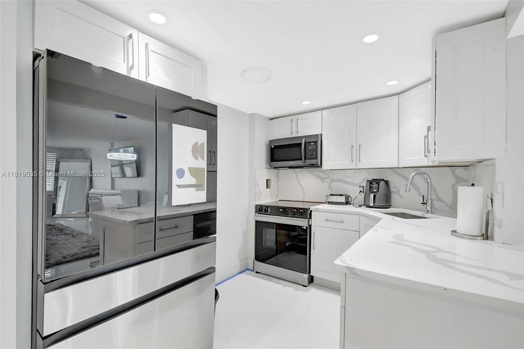 MUST SEE!!! TURN KEY COMPLETELY RENOVATED! BRAND NEW KITCHEN, QUARTZ COUNTER TOPS, NEW APPLIANCES, NEW CABINETS, COMPLETE NEWLY REMODELED BATHROOMS, EXTRA LARGE 33 BY 33 WHITE PORCELIN TILES. NEW BASE BOARDS AND DOOR TRIM. LEVEL 5 SKIM COATING SMOOTH FLAT CEILINGS. NO POPCORN CEILINGS!!! NEW HURRICANE IMPACT WINDOWS. FULLY REMODED IN JUNE OF 2025. OVER $100,000 IN REMODELING. NO ASSESSMENTS OR UP COMING ASSESSMENTS. FULL REMODELED LOBBY AND POOL DECK, FITNESS CENTER AND SPA. CONFERANCE ROOM BARBEQUE ALL LOACATED IN PERFECT LOCATION. YOLO!!!!! WALK ACROOS THE STREET AND FEET IN THE SAND FULL BEACH ACCESS!!!! PUBIX GROCERY NEXT DOOR!