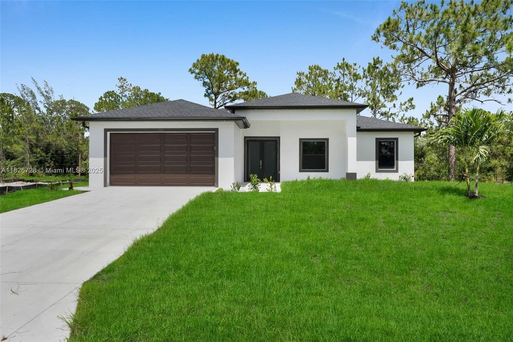 HALF-ACRE LOT! Nestled on a quiet dead-end street, enjoy the peace and privacy you’ve been looking for. The open-concept layout features high ceilings, impact windows, and elegant finishes throughout. The kitchen is designed for both functionality and style, complete with granite countertops, stainless steel appliances, and a large island perfect for entertaining. Step outside and imagine the possibilities with this oversized lot—ideal for a future pool, outdoor kitchen, or simply room to roam. No HOA and plenty of space for your toys, trailers, or boats. Located in the growing area of Lehigh Acres, with easy access to schools, shopping, and dining. This home is the perfect blend of comfort, convenience, and value. Schedule your showing today and make this your new home!