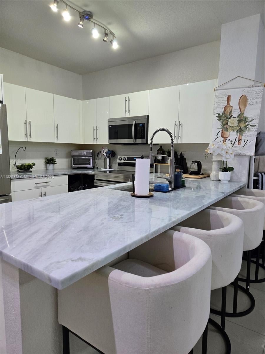 The most upgraded townhome in Santa Monica! Completely move-in ready! This bright 3-bed, 2.5-bath living space boasts new quartz kitchen countertops, stainless steel appliances, & contemporary cabinetry with lazy susans! The patio is enclosed via hurricane-impact sliders – ideal as a private home office, gym, or playroom. All bathrooms have been renewed with luxurious vanities & modern amenities! This home features complete hurricane impact window protection for safety & energy efficiency. The coated & sealed air ducts provide superior air quality. Smart locks and door handles featured within. Immediate rentals ARE allowed! LOW HOA! Located in the secluded, family-friendly Santa Monica neighborhood, conveniently located near 5 Publix's, 4 parks, the Cypress Creek Trail walking path & I-75