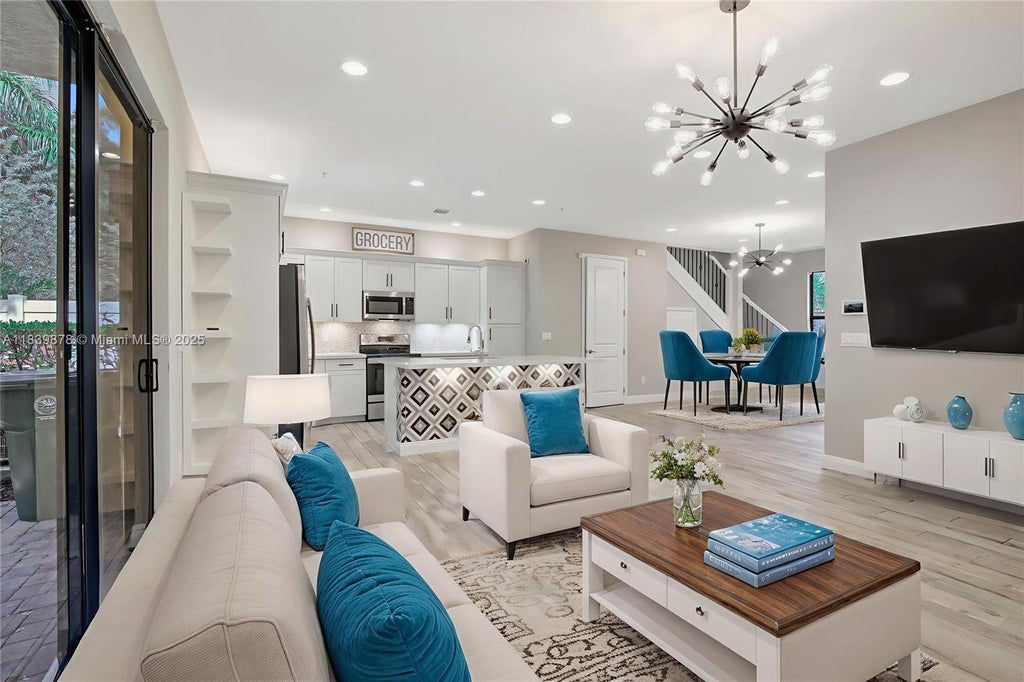 Welcome to this stylish corner townhome in the sought-after gated community of Chapel Grove. Built in 2019, this 3-bedroom, 2.5-bath beauty offers peace of mind w/ full hurricane impact protection. Step inside to discover a crisp, modern kitchen featuring a large island that flows seamlessly into the spacious family room—perfect for lively gatherings or quiet evenings at home. Designer tile & lighting add an artistic flair, making this kitchen truly stand out. Upstairs, you’ll find all bedrooms thoughtfully arranged for privacy and comfort, while sleek bathrooms showcase contemporary finishes. The garage has been partially converted into a flex office area but can easily revert to a full garage. Outside, a cozy private patio invites morning coffee or an evening unwind.