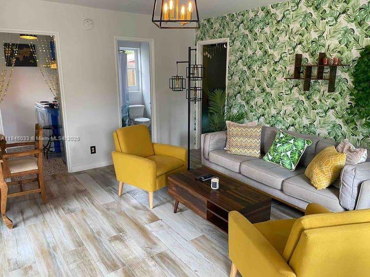 Charming fully renovated vintage style home with one bedroom plus full bathroom, comfortable cozy living room equipped with TV and full closet. Complete equiped kitchen . Outside you can enjoy everyday the magic Sunsets in the beautiful garden with a barbecue and a tiki bar to enjoy with your guest & family.