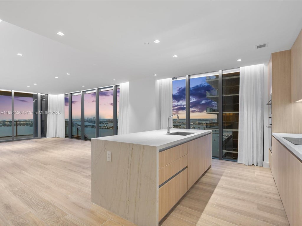 The premier line in Aria Reserve’s South Tower— with $250K in improvements for an unmatched living experience. This 2,500+ SF corner residence includes 2 assigned parking spots and features a private elevator foyer, 4 bedrooms, 5.5 baths + den, oak-style tile, chef’s kitchen w/ Thermador appliances & waterfall island, illuminated primary closet, recessed drop ceilings, and electric curtains with blackouts. A 298 SF terrace frames panoramic views of Miami's most iconic landscape. Resort style living with 2 acres of world-class amenities: resort pools, spa with sauna & massage rooms, fitness & wellness centers, kids’ club, putting green, plus tennis, basketball & pickleball. Prime Edgewater location—steps to Design District and minutes to Brickell & the beaches.
