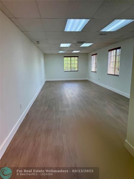 Amazing opportunity to RENT an office space in a great building along high traffic street. Unit includes very functional space located on the corner second floor with private office overlooking Stirling Road. Freshly painted and clean, new floors and open floor plan in main area with semi-private space. Building has common area with elevator access and lobby as well as covered and uncovered parking. Property is very well maintained and secure. Located near large shopping complexes and 2 miles from Florida Turnpike.