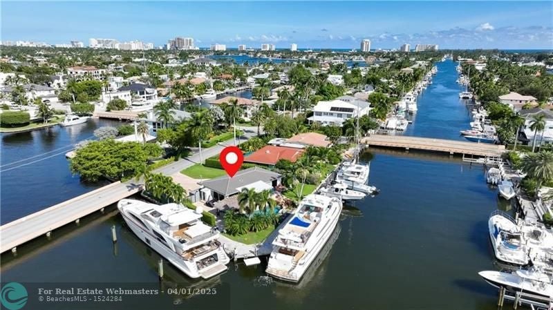 ATTN YACHT OWNERS!! 250' of Deep Waterfront dockage! 100' plus Yacht? Bring it! 33' tender? Put it on the lift! (2) waverunners & a dinghy? Drive up on the JetDock!! Fabulous Point Lot w/Large Turning Basin in Fort Lauderdale. Lots of PROTECTED Dockage for all the toys!. 3 Phase electric. This type of dockage is hard to find at any residence! Only a few minutes to Port Everglades & the Ocean!! Beautiful FULLY TURNKEY FURNISHED 4 Bed/ 3.5 Bath w/Split Bedroom Plan. HUGE Modern Kitchen, Sparkling Floors throughout. Panoramic Water Views, NEW ROOF! Tropical Freeform Pool and Hot Tub! Expansive Patios w/Travertine Pavers w/lush landscaping & grassy play areas enhance your Ft. Lauderdale lifestyle in this Piece of Paradise!! Private & quiet, you won't want to leave!! Plenty of parking, too!!
