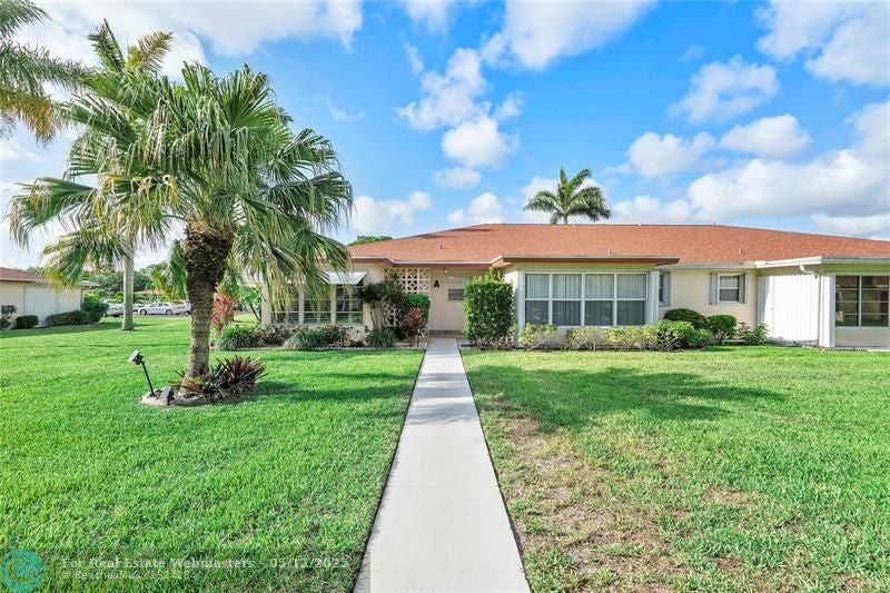 Welcome to this beautifully updated villa nestled in a sought-after 55+ community. This is a move-in ready 2-bedroom, 2-bathroom, "indoors" Florida/Sun room, and patio make it a perfect home! Home boasts modern upgrades. Enjoy the light-filled open floor plan, upgraded kitchen, Stainless Steel Appliances, and renovated bathrooms with Glass Enclosures. No Pop Corn ceilings, New Plantation Shutters, Interior Paint 2024, LED lights 2024, Washer/Dryer inside the unit 2024, New Fans throughout the unit, Roof 2018. Great amenities: Clubhouse, Pool, Fitness Center, Tennis, Pickle Ball and more! Located near popular restaurants, shopping, golf courses, and major highways, making it easy to enjoy South Florida living with low HOA fees! Don’t miss the chance to make this gem your next home!
