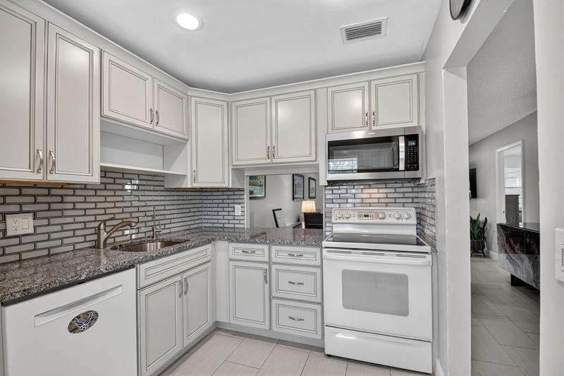 Bright, airy corner villa in Golden Lakes Village, a 55+ gated community near the Lake Meryl pool & clubhouse. This 2-bed/2-bath home has , ceramic floors, an updated kitchen with newer appliances and accordion shutters plus an enclosed patio with impact windows. A/C (replaced in 2022) to ensure comfort. Spacious living areas with natural light & privacy. The enclosed patio doubles as a year-round relaxation or hobby space. Bedrooms offer generous closets. Courtesy bus runs to nearby shopping & dining. Maintenance covers Xfinity cable, internet, water, insurance & reserves. Amenities include café, fitness center, pool, hot tub, pickleball, tennis and shuffleboard. 24/7 security; no special assessment; milestone inspection does not apply to this one-story villa.