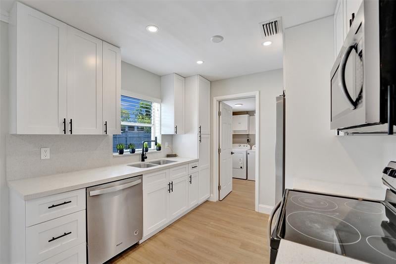 BACK ON THE MKT DUE TO BUYER NOT QUALYFING FOR FINANCING. Appraised at Asking Price! Move In Ready 3 Bedroom , 2 Bathroom home ready to be yours! Newer AC & water heater. Roof 2019. This home offers a nice, comfortable living space along with a great sunroom. Very bright and fresh! Kitchen has been modernized with white shaker cabinets, quartz counters, stainless appliances. Vinyl flooring throughout. Primary bedroom has an en-suite bathroom. Full laundry room! Freshly painted interior and exterior. Fully fenced backyard with Mango trees. NO HOA. Quiet neighborhood. Large driveway for multiple cars, RV or Boat!