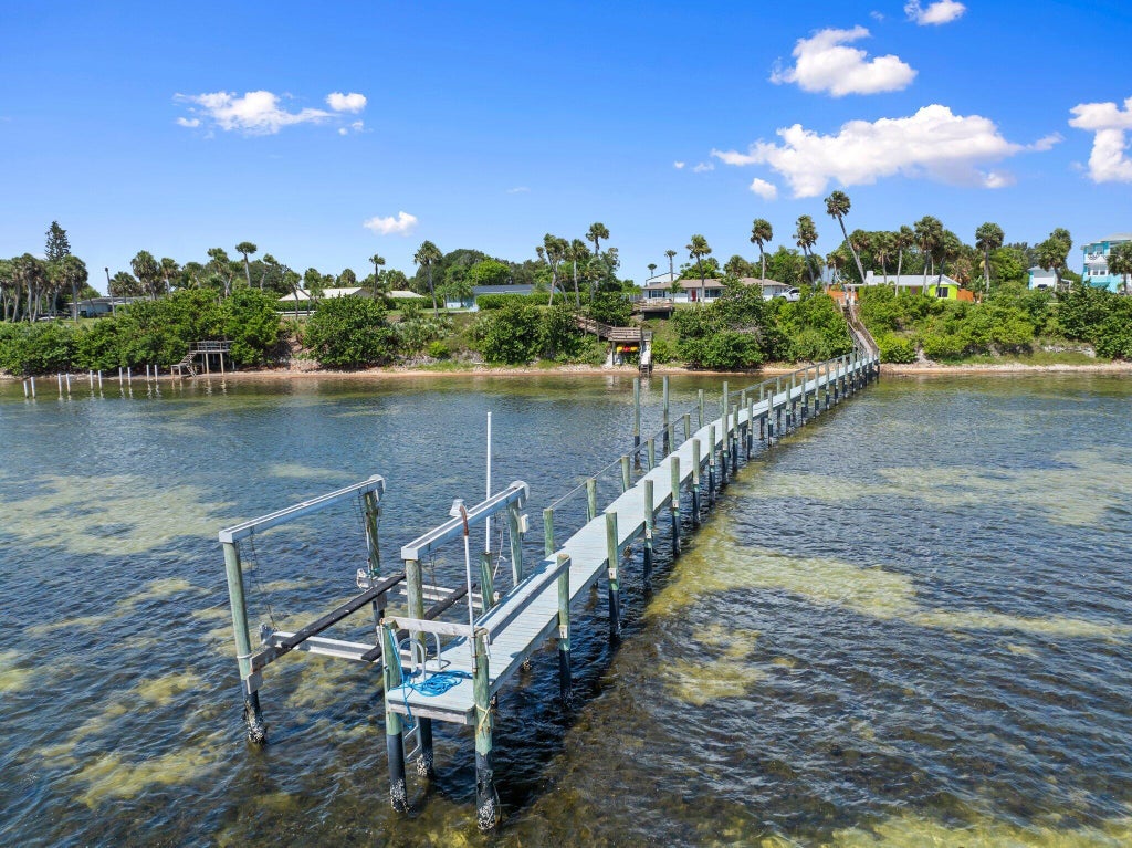 Rare extended dock on Indian River Dr w/lift!! Over $100K in upgrades. Features include, standing seam metal roof, circular paver driveway, extended paver patio with retaining wall, fully fenced yard with double gate - bring RV/boat 220V hookup. Upgraded underground 200-amp electrical panel. AC 2021 with new ductwork. 1500 gallon septic replaced 2021. Sloped lot offers intracoastal vantage from every angle - room to build another home. Butcher block kitchen counters, fireplace, tongue & groove ceilings, 2-20ft shipping containers for additional storage. Lush landscaping including passionfruit, avocado, Barbados cherry, elderberry, dragonfruit, mango, guava, banana. Great investment opportunity/income potential.